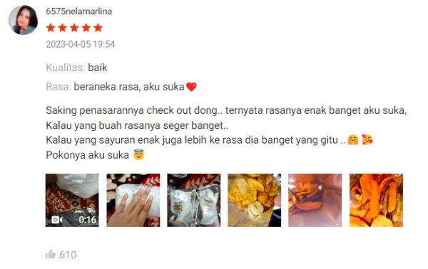 Keripik buah sayur menjadi alternatif kamu untuk yang menjaga asupan makanan tapi tetap ingin nyemil, karena terbuat dari buah sayur yang dihilangkan kadar airnya dan pastinya no MSG loh jadi aman dikonsumsi segala kalangan
